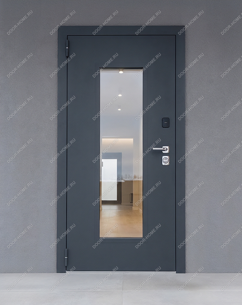 Серая входная дверь с окном